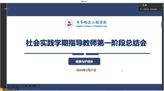 为切实推动社会实践学期的各项工作高质量开展,1月21日下午,健康与护理系组织召开社会实践学期第一阶段总结会。本次会议由系党总支副书记姜宏伟主持,健康与护理系全体指导教师参会。