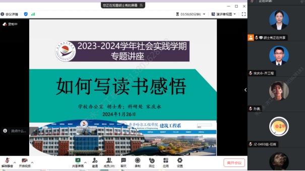 随着2023-2024学年度社会实践学期的深入开展,建筑工程系全体生涯导师继续以认真、严谨的工作态度面对此次指导任务,针对全系学生不同地域和不同特长,以“生涯导师制”+“学长制”的混合模式开展创新社会实践学期指导工作,并安排党员学长以助教身份协助生涯导师工作。日前,各位生涯导师分别通过腾讯会议平台,召开社会实践学期指导交流会。