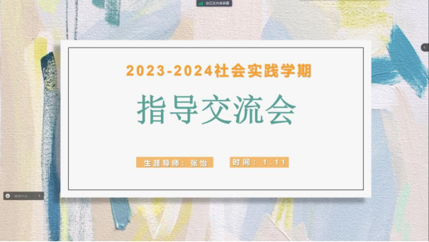 生涯导师胡士秀:2月2日,生涯导师胡士秀通过腾讯会议召开2023-2024学年社会实践学期“专业项目之我谈”的专题分享会,社会实践学期5个小组的学生在线参加了会议。本次专题分享会的召开主要针对社会实践学期开设近一个月,胡士秀针对个别学生存在的对专业项目“不知如何开展”的问题,邀请助教,即党员学长郭永华进行经验分享。会上,胡士秀希望同学们能够与党员学长建立良好的联系,充分发挥从生涯导师到党员学长,再到小组组长,最后使全体学生受益的团队合作的作用,在今后的社会实践学期各项目中能够互通有无,共同进步。