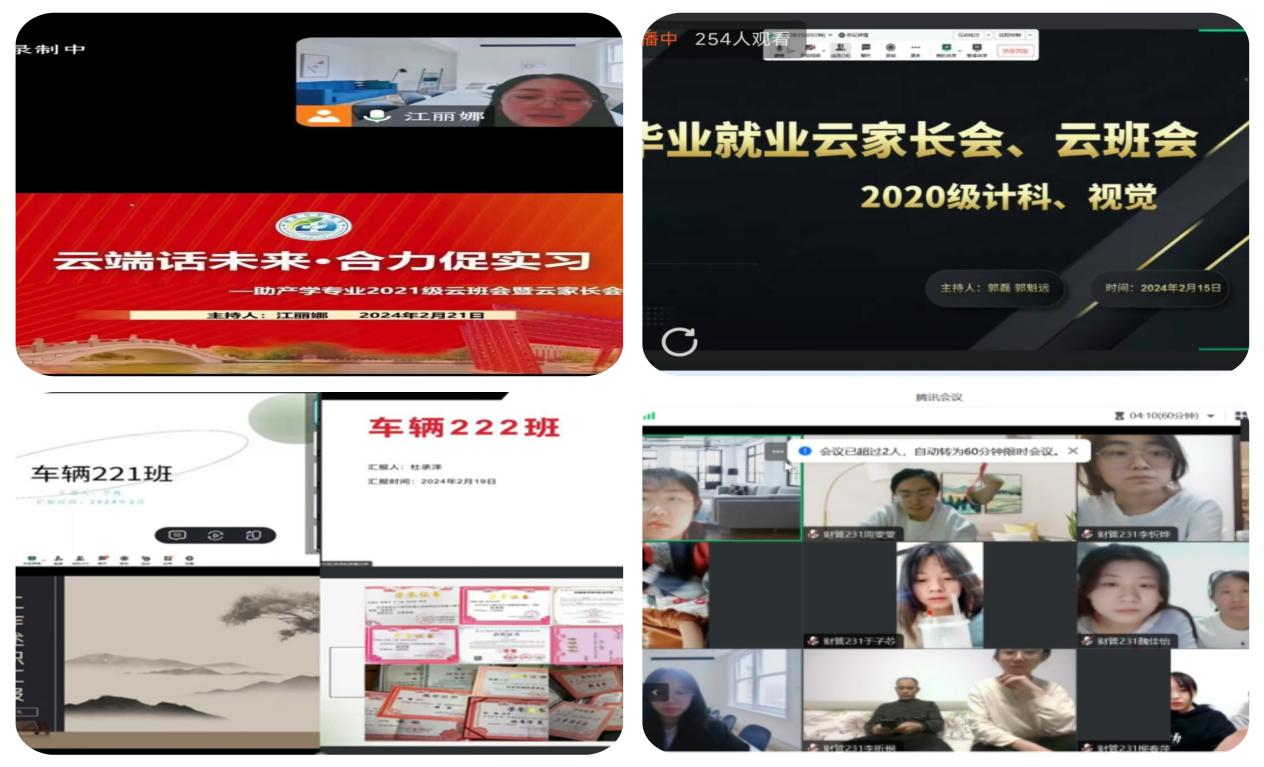接近社会实践学期家访尾声,各系复盘家访情况,将家访档案中出现的共性问题、开学要求及返校安全教育等工作部署进行集中进行反馈与答疑。学校辅导员共计开展70次网络云班会、云家长会,充分利用腾讯会议、小鹅通平台直播、钉钉等新媒体资源,建立有效的家校沟通机制,促进家长了解学生的学习情况和成长需求,拓宽家校共育渠道。