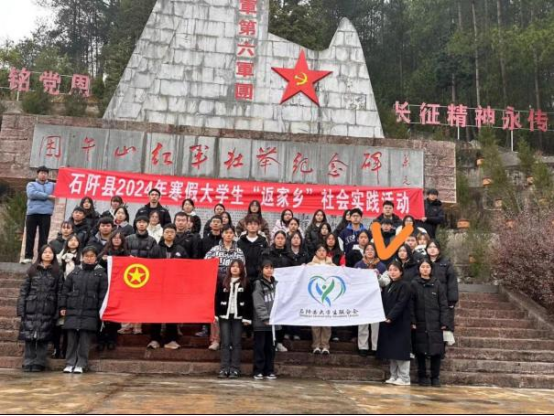 建筑工程系土木232班尹代华寒假返乡后, 与50余名返乡大学生一起来到困牛山红军壮举纪念碑前。了解到红六军团困牛山战斗历史背景和英勇事迹后,表示要永远牢记历史, 传承红色基因,把青春和力量贡献给祖国,确保红色江山永不变色。