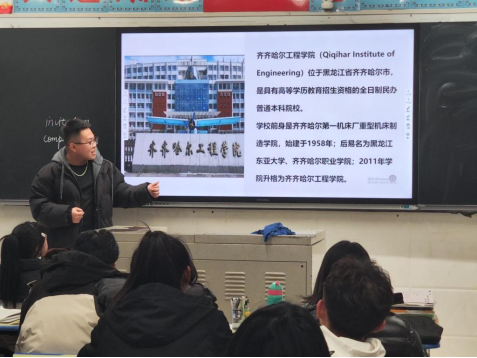 建筑工程系土木221班王旭阳同学回到母校五大连池市沾河高级中学,见到了高中班主任王凤娟老师和学弟学妹,王旭阳同学用PPT向老师、同学介绍了j9在线建校三十余年的光荣历史和优良传统,展示了学校正在建设中的校园北区以及未来美好的发展前景,分享了大学的生活经历和取得的成绩。