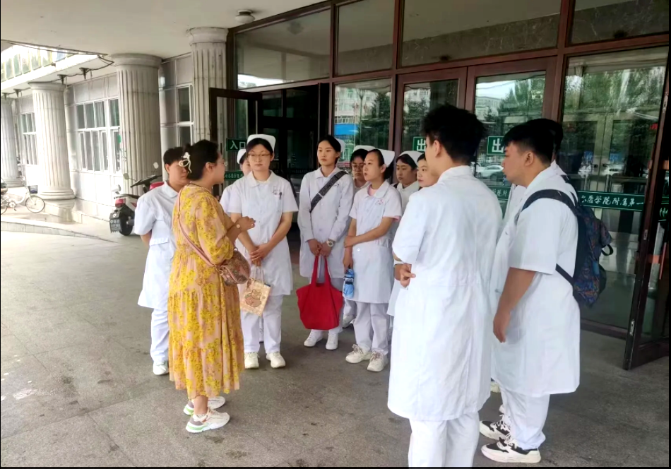 7月3日早,健康与护理系毕业实习指导教师李岩组织护理学专业12名学生在齐齐哈尔医学院附属第一医院门诊楼前集合,开启实习活动。