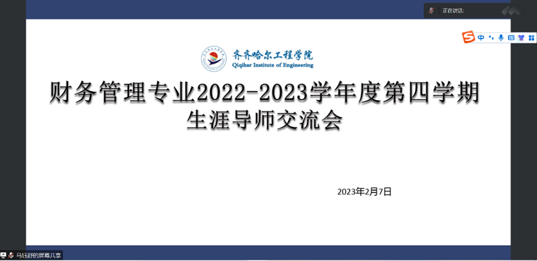2月7日,管理工程系财务管理专业线上召开第四学期生涯导师交流会,旨在更好地落实生涯导师制度,通过辅导员、专业教师与生涯导师的深入配合,帮助学生解决第四学期中的实际问题。专业负责人于骁晗老师出席,全体财管专业辅导员及生涯导师参加,辅导员刘娜老师主持。