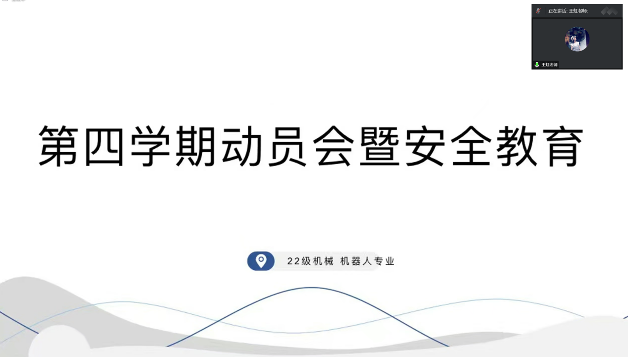 1月3日18点,机电工程系辅导员老师王虹在线组织召开了第四学期动员会暨安全教育会议。机械专业长高爱利、机器人专业长高淑婷,全体学长及机械、机器人2022级学生共230余人参会。