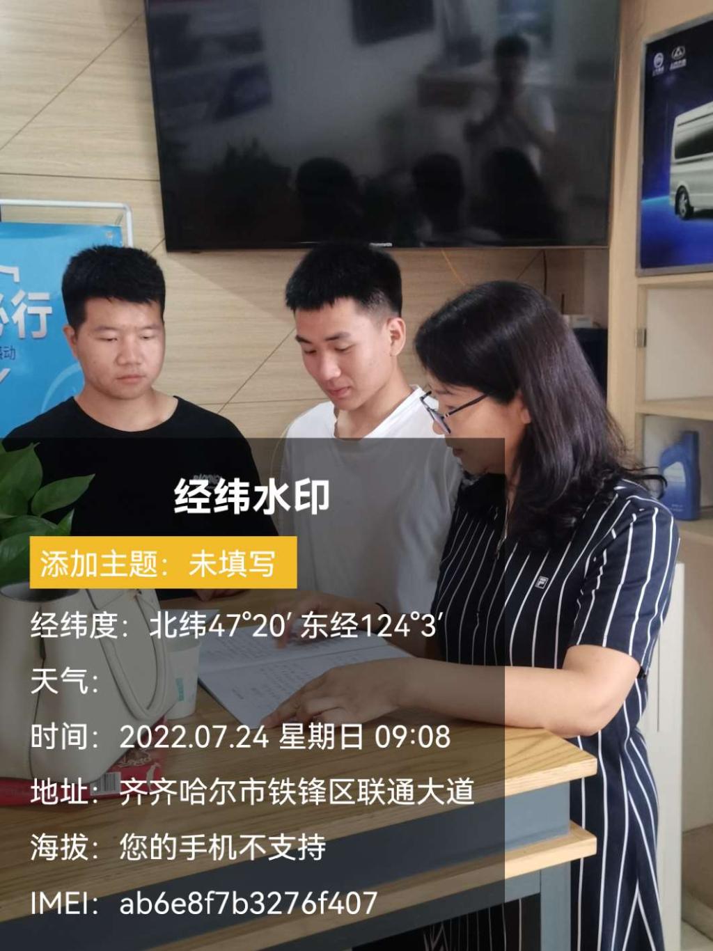 7月24日,王丽坤老师利用休息时间来到齐齐哈尔上汽大通4S店检查指导实习,并与企业领导沟通学生的实习情况。