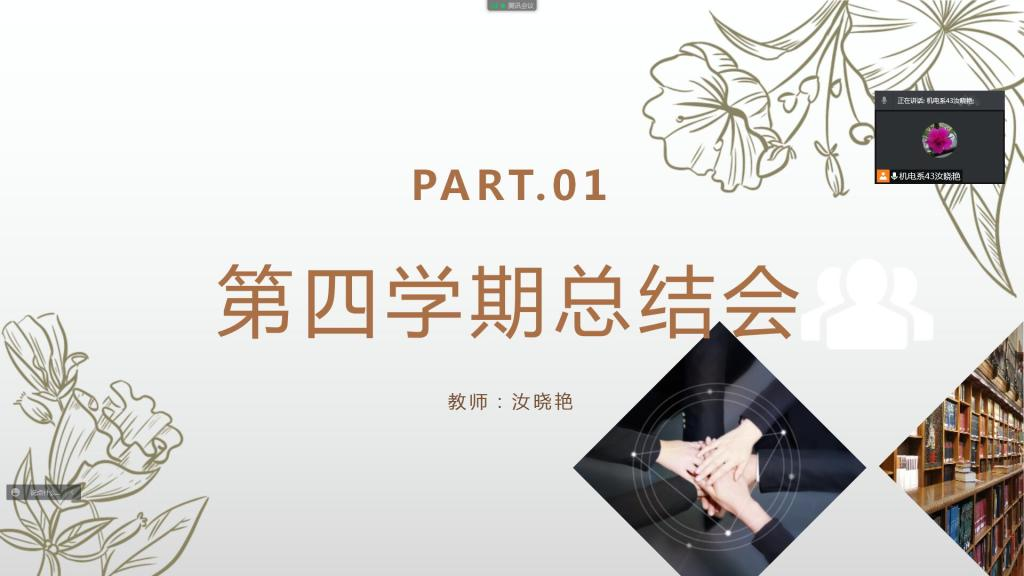 3月1日,机电工程系汝晓艳老师采用线上会议方式进行第四学期总结,各年级指导小组成员参加会议。汝晓艳老师首先强调了防疫安全,号召学生非必要不聚集,出门做好安全措施。随后,总结了第四学期各阶段的活动完成情况,汇总、分析了同学们实践中遇到的问题和解决方法。李云、张煜、罗沛宇三名同学对第四学期完成程度和收获进行了详细的汇报,其中2021级张煜同学多次进行读书交流活动,在假期里积累知识不断充实自己。2019级和2020级学生也对第四学期活动进行了分享。汝老师要求,同学们在第四学期里要时刻铭记“为融入社会走进来,为服务社会走出去”的校训,积极发挥自身特长参加社会活动。