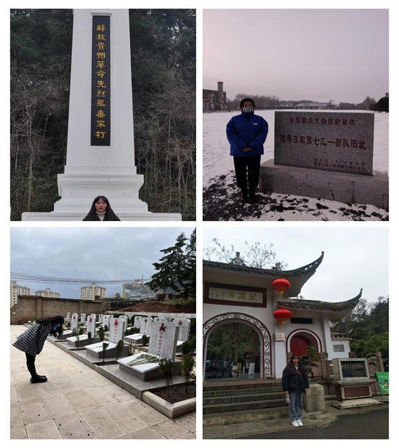 2022年春节刚过,学校管理工程系互联网金融专业2021级社会实践第三组的三位同学分别在各自的省市开展了“铭记历史与红色足迹踏寻”之旅。顾盼同学参观了位于黑龙江省的侵华日军第七三一部队旧址;普思瑜同学在云南省的烈士陵园缅怀先烈;陈惠淋同学参观了贵州省的革命烈士纪念碑和麒麟洞。三位同学从不同“踏寻”中得到了不一样的感受并进行分享。