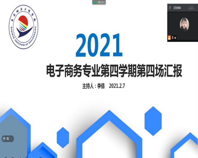 春节假期即将来临,为了进一步加强同学的安全意识,确保第四学期顺利进行的同时也能让同学们注意自身安全防护。管理工程系电子商务专业于2月7日在线上进行了第四学期第四场汇报。本次汇报由李倩老师主持。