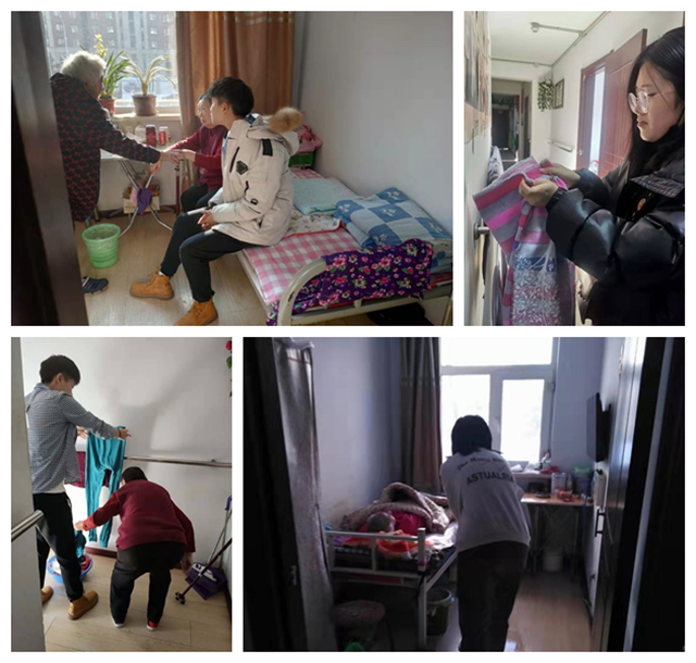 1月18日,我们GY002组组长王美琪带领组员郭富媛、张楠和我,来到长春市的舒怡养老院,开展关爱老人公益活动。在养老院里,我们帮助老人整理衣物、擦拭家具,耐心地与老人聊天,听老人讲自己的过去,也与老人分享了自己的校园生活。我们的到来,让这里的老人感到很开心。