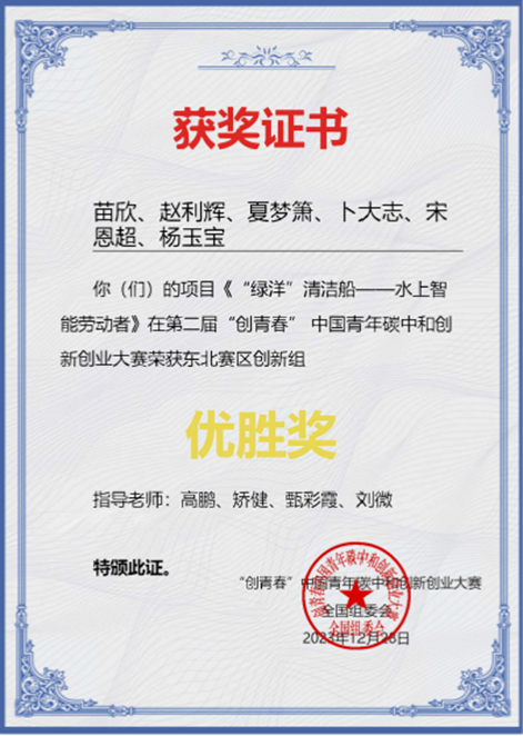 为积极稳妥推进碳达峰碳中和,持续推进能源安全新战略走深走实,切实把学习成效转化为推动能源高质量发展的生动实践,中国青年创业就业基金会、中国石油大学(北京)、中国石油天然气集团有限公司、中国石油化工集团有限公司、中国海洋石油集团有限公司共同发起和主办第二届“创青春”中国青年碳中和创新创业大赛,第二届“创青春”中国青年碳中和创新创业大赛以“迈向碳中和:中国青年在行动”为主题,12月28日东北区域赛落下帷幕。我校团队负责人电气201班李庆霖,成员李世佳、阎秋华、李长甜、杨顺、兰庆儒完成的作品《飞磁立止-开启电磁急停新时代》获创新组铜奖;团队负责人电气201班苗欣,成员赵利辉、夏梦箫、卜大志、宋恩超、杨玉宝完成的作品《“绿洋”清洁船——水上智能劳动者》获创新组优胜奖。