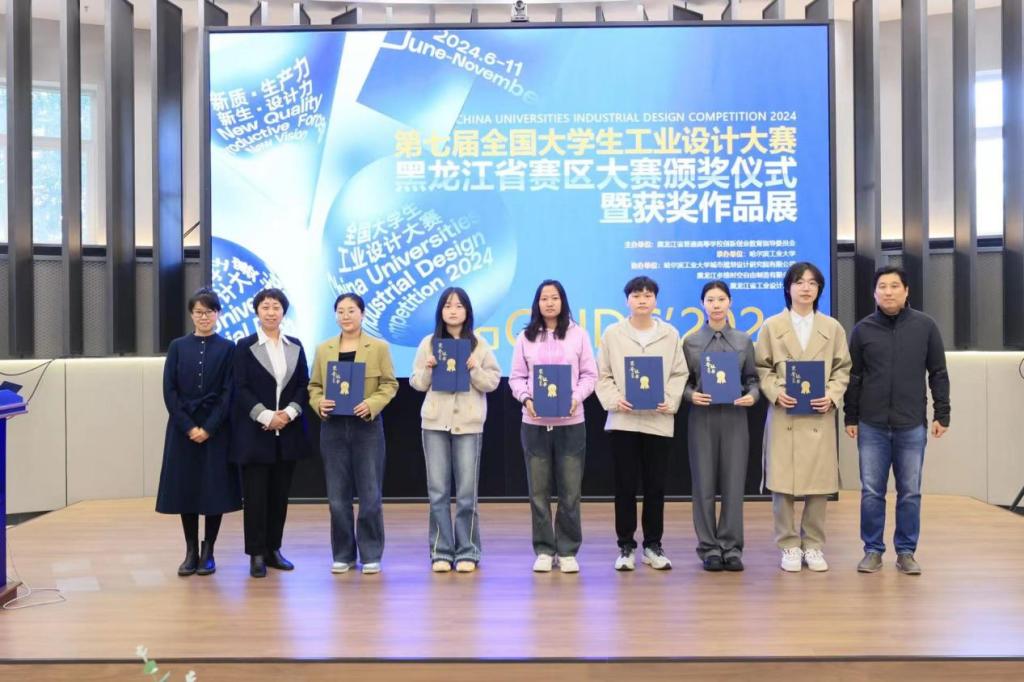 近日,第七届全国大学生工业设计大赛黑龙江赛区颁奖仪式在哈尔滨工业大学建筑与设计馆举行,我校机电工程系机械设计制造及其自动化专业学生李子昂、方瞻未、明海军荣获黑龙江赛区一等奖(晋级国赛),龙凯、高原、余显义荣获黑龙江赛区三等奖。机电工程系高鹏老师获评优秀指导教师。