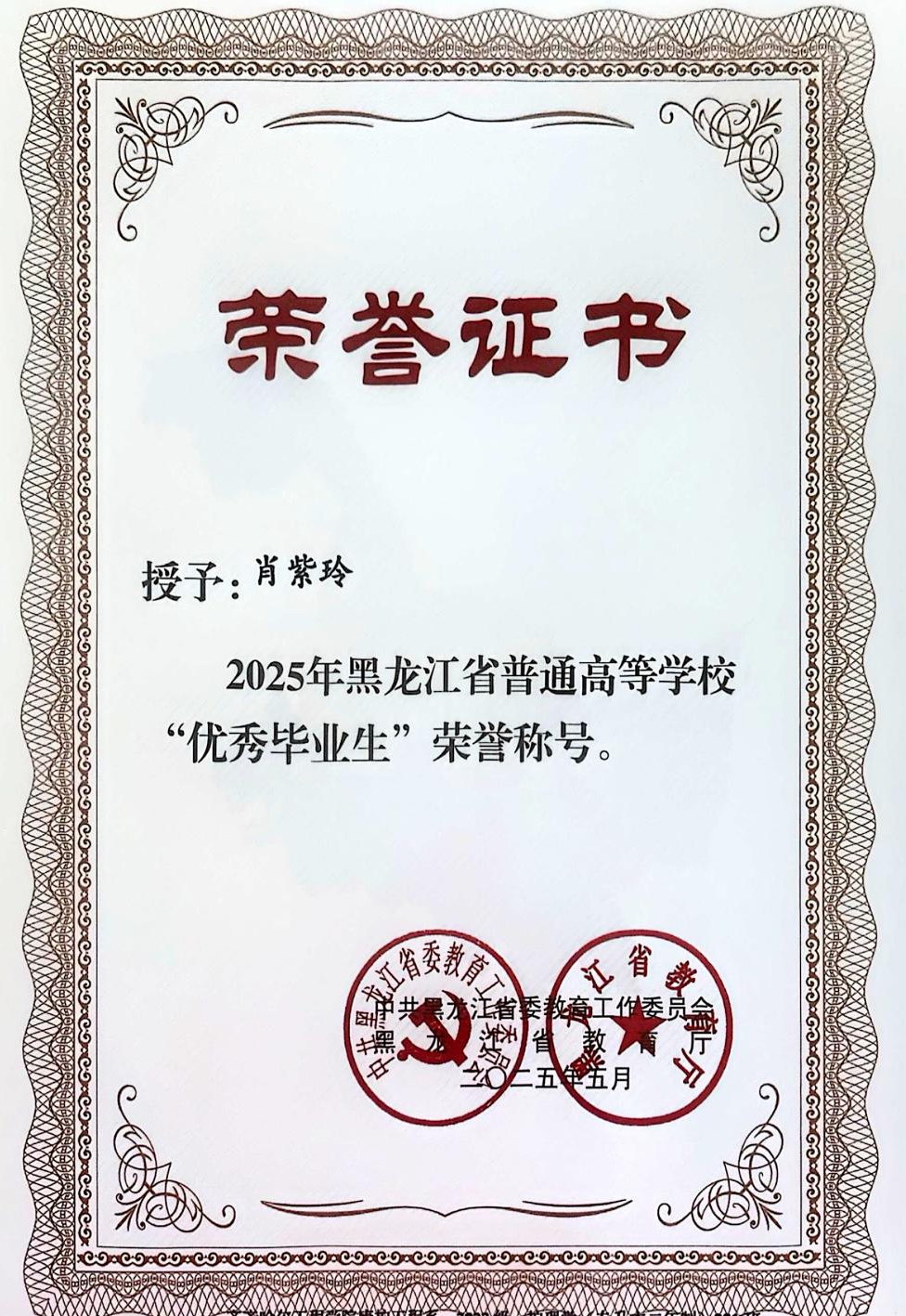 肖紫玲,出生在江西省,医学院2025届护理学(专升本二年制)专业毕业生,获评黑龙江省优秀毕业生。在校期间,荣获国家级、省级创新创业大赛奖项,并被学校评为优秀学生干部、三好学生。目前,肖紫玲已成功入职家乡的一家医院,开启职业发展新征程。