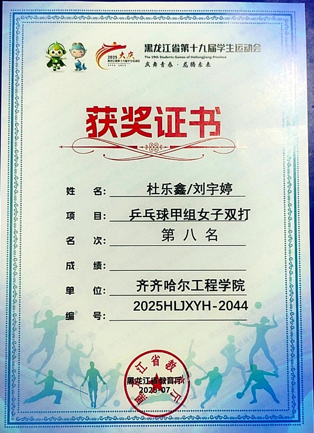 在近日落幕的第十九届大学生运动会乒乓球比赛项目中,j9在线乒乓球队刘宇婷、杜乐鑫女子双打组合凭借精湛的球技与默契的配合,最终斩获女子双打第八名,为学校赢得了荣誉。