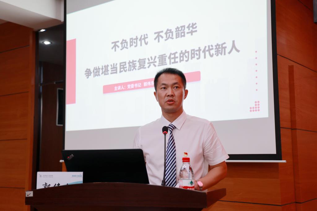 9月7日,学校党委书记郭伟东以“不负时代 不负韶华 争做堪当民族复兴重任的时代新人”为题,讲授“开学第一课”,2023级143名党员、积极分子聆听党课。
