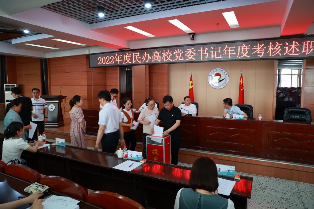 述职结束后,与会人员对党委书记2022年度工作进行了民主测评,肖锋刚部长一行还与我校党委班子成员、部分干部教师进行了交流谈话。