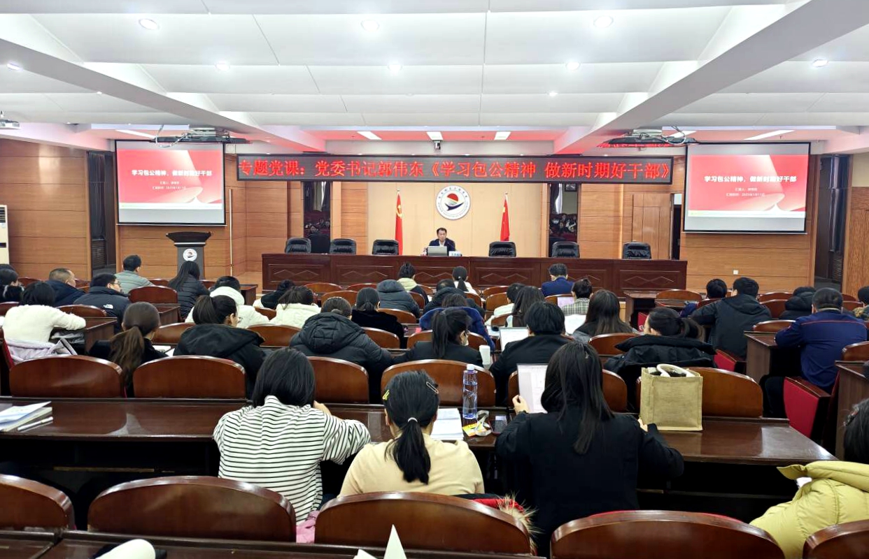 为深入推进党风廉政建设,提升干部队伍的政治素养,1月11日,学校党委书记郭伟东在图书馆601报告厅以《学习包公精神,做新时期好干部》为题讲专题党课。学校领导、骨干学习班全体成员参加。