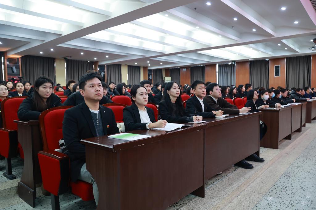 为深入学习贯彻党的二十届四中全会精神,弘扬光荣传统,赓续红色血脉,12月16日下午,学校在图书馆601报告厅举行“中国共产党人精神谱系”宣讲报告会。学校党委委员、党委宣传统战部部长张苗主持会议。各二级党组织书记、副书记,各基层党支部书记,马克思主义学院全体教师以及来自四个学院的学生代表共同聆听报告。