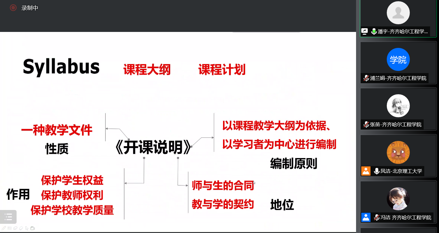 8月21日晚,曹勇安教授领衔FT课程研发团队成员潘宇、刘春媛、郭玲玲和张苗共同组织会议后置研修坊。来自清华大学、北京理工大学香港科技大学李然等院校30多名教师参加了研修活动在曹勇安教授及四位指导教师分别就课程矩阵的开发、开课说明的撰写&和AI赋能课程开发等内容进行精讲后,研修坊进行了分组深度研讨,课程开发逻辑、如何解决高校课程思政“表面化”“硬融入”这一“急难愁盼”问题、FT课程通平台的功能和使用方法等问题进行了深入研讨。在总结分享中,来自大连交通大学的王晗教授认为FT课程开发模式促使课程教学真正落地,明确、具体、可测。齐鲁工业大学刘芳老师表示,通过听取曹勇安教授和指导教师团队的讲座,自己对课程教学有了新的认识,把课程内容以课点的形式划分为知识点、技能点、态度点是之前没有想过的,基于“数字智能”的课程建设生态系统“课程通”是以前没有接触过的,有种豁然开朗的感觉。