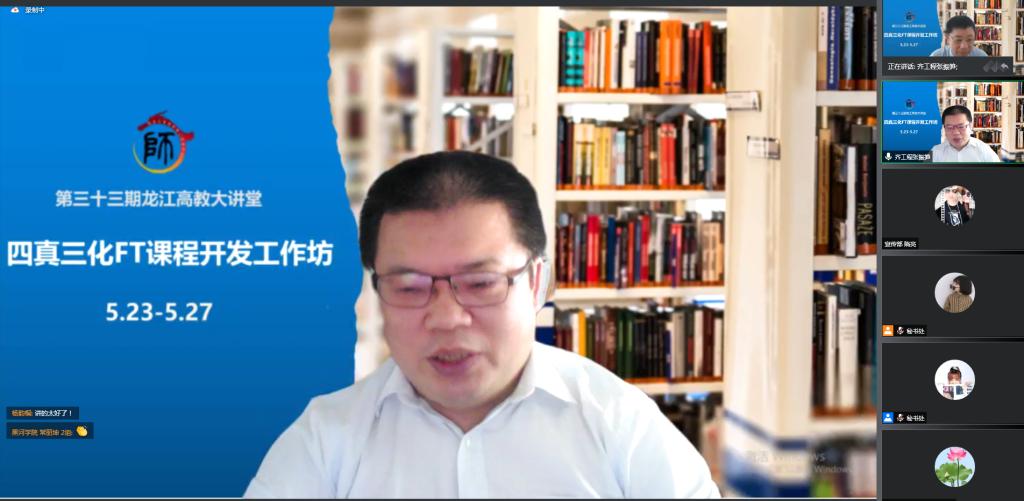 5月23日,由我省教育厅高等教育处与高校师资培训中心主办、我校承办的第33期龙江高校大讲堂暨首期“四真三化”(FT)课程开发工作坊(云)在线举办。省教育厅领导、主办方负责人、我省23所本科院校的教学副校长,28位教务处长,32所本科高校的156位教师,以及全国高校的专家学者、一线教师等2150余人参加开班式。
