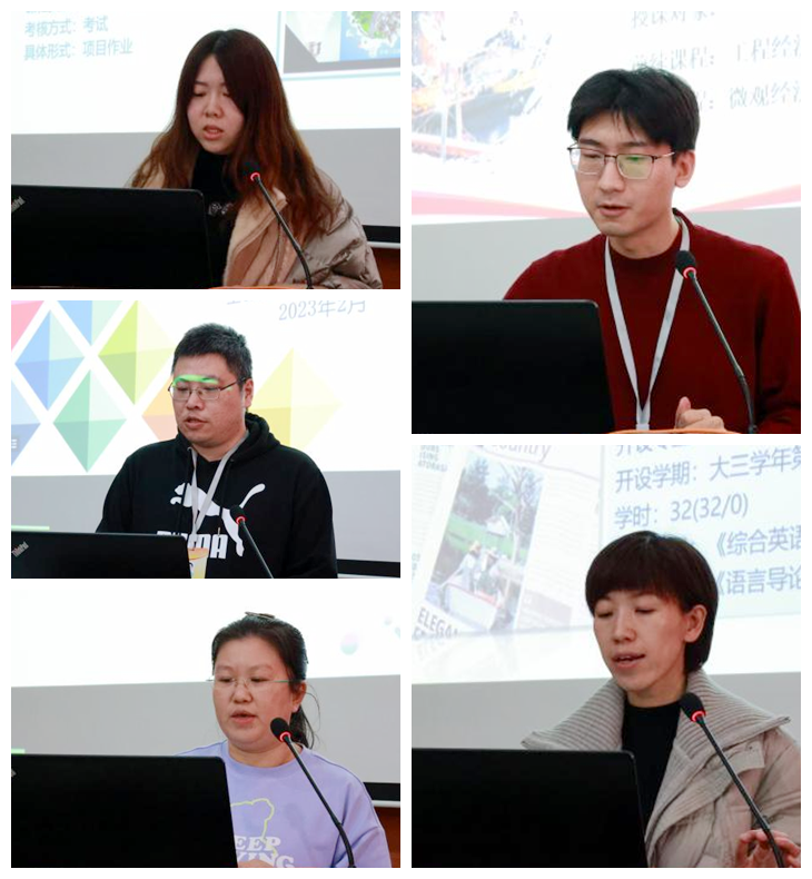教师们结合“FT课程建设模式”,以专业学年教学目标为引领,以落实专业对门课建设要求为主线,系统阐述该门课程的基本思路和主要目标任务。汇报中,教师们明确门课教学目标,聚焦课程思政建设,深入挖掘本门课程与课程思政的“融合点”,并将企业项目、真实案例等要素融入课程教学,创建“四真”职业环境,坚持成果导向、课赛融合,细化评价指标,改进评价方式。