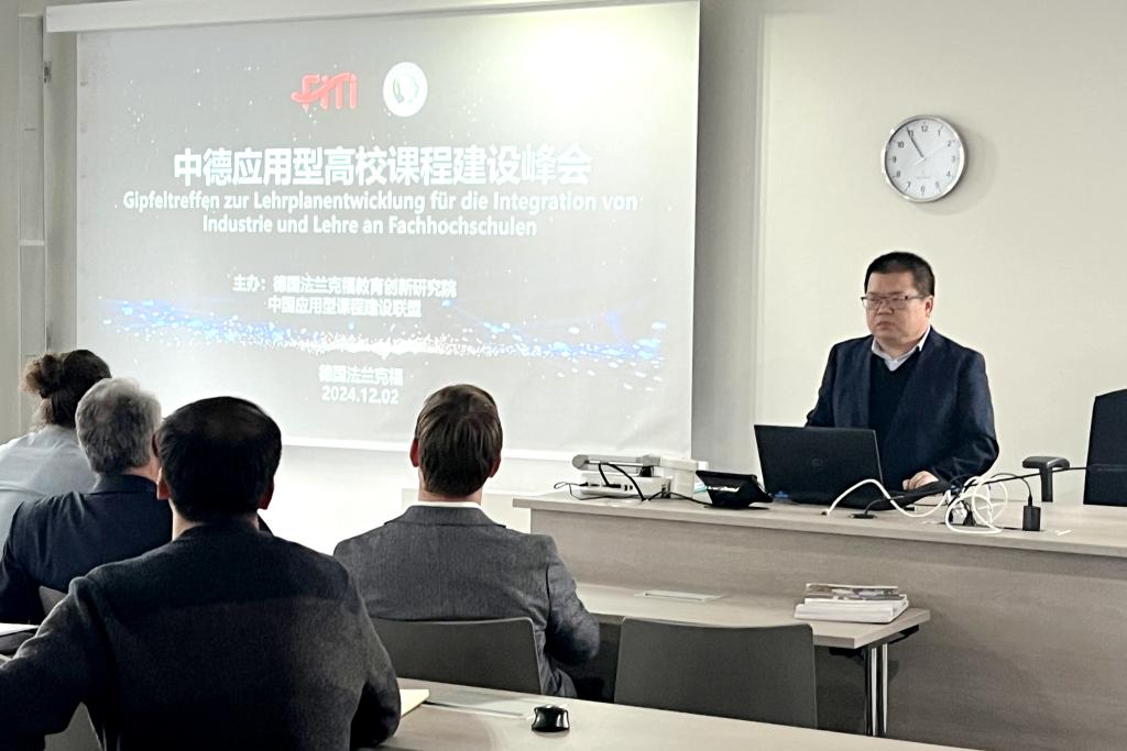 12月2日上午,中德应用型高校课程建设峰会在法兰克福举行,中国应用型课程建设联盟与德国法兰克福教育创新研究院共同主办,德国科隆应用技术大学、j9在线、南宁学院、硅湖职业技术学院等院校机构相关负责人及应用型高校课程建设领域专家、学者出席。