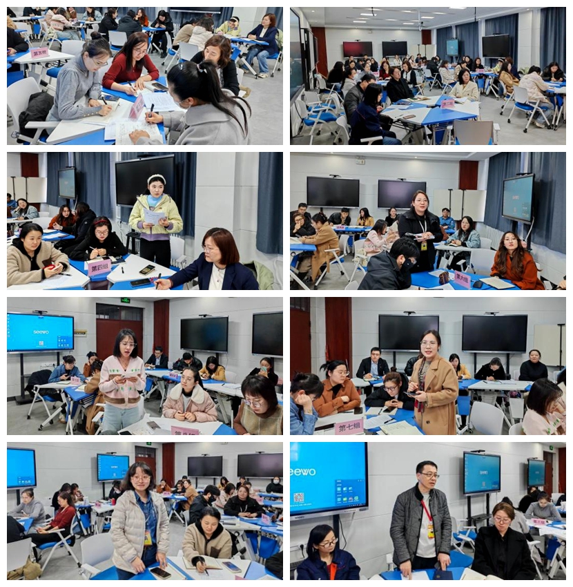在交流环节,参会教师们积极踊跃,按三四人为一组,通过教学相长的“212”学习方式展开深入讨论。各组结合汇报案例与自身教学实际,针对各主题下新兴教育技术在学习产出设计中的应用、课程思政评价指标体系的构建、复合型考核内容与方式的创新等具体问题,各抒己见,碰撞出思维火花。每组讨论结束后,抽签确定教师,现场交流本组研讨结果,再抽取一名教师进行点评,主题汇报人结合自身课程考核评价改革经验参与点评,为讨论增添深度。