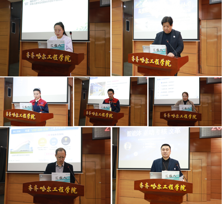 在汇报环节,7位案例负责人按照会前抽签顺序依次登台,围绕“四真三化(FT)”课程建设模式,聚焦“以考核促‘四真’、促项目化教学”核心目标,通过精彩的PPT演示和生动的讲解,分享了各自在课程考核评价改革中的创新举措、实施过程、成效数据以及反思与展望。案例内容涵盖锚定成果达成、验证成果质量、保障成果落地等多个方面,充分展现了我校教师在考核评价改革上的深入思考与扎实实践。