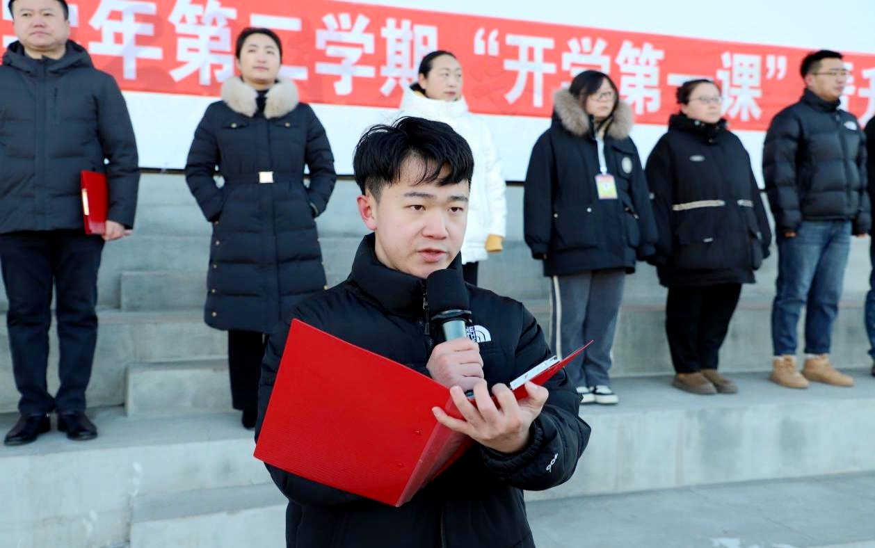 学校学生会主席杨嘉赫宣读新学期倡议,表示,新学期要认真制定目标计划,合理安排学习生活,以饱满的状态、崭新的姿态和积极的行动为学校增光添彩。