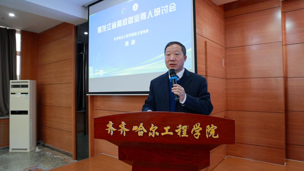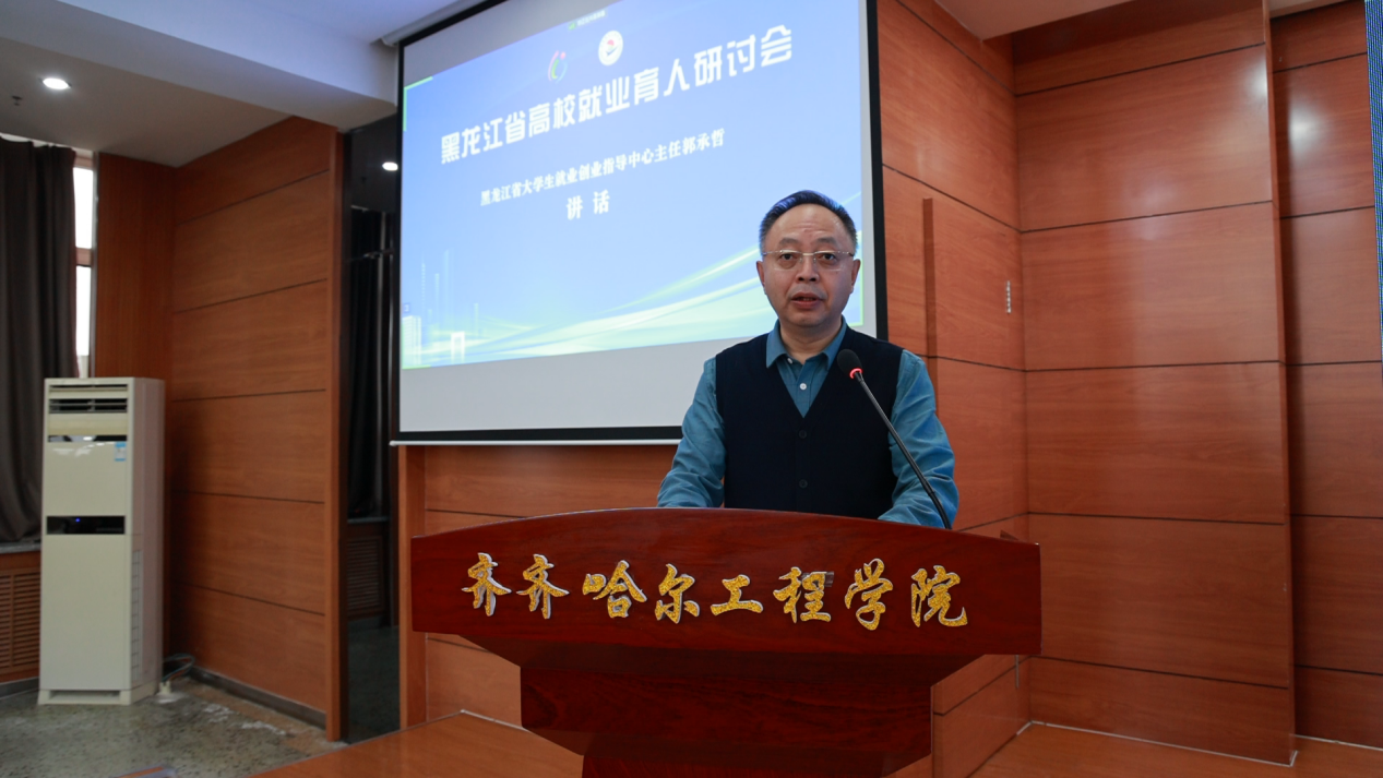 黑龙江省大学生就业创业指导中心主任郭承哲出席会议并讲话,郭承哲代表省大学生就业工作部门及全省高校,感谢省内外知名专家的莅临指导,感谢学校对本次活动做出的周到细致服务,并就加强高校就业育人工作讲三点意见:一是从宏观角度,理解和把握就业育人的内涵意蕴与时代价值;二是从现实角度,梳理和总结当前我省高校就业育人工作存在的问题;三是从指导服务角度,探索与构建就业育人的实践路径。郭承哲指出,下一步,省大学生就业创业指导中心还将通过开展省级就业创业金课遴选、就业专项课题研究、高校就业指导教师系列培训、生涯咨询公益服务等系列活动,持续为高校提供指导与服务,一如既往的与高校携手努力做好黑龙江省高校毕业生就业工作。希望各高校以本次会议为契机,树立就业育人理念,开展系列就业育人行动,营造全省就业育人氛围,推动全 省就业工作再上新台阶。
