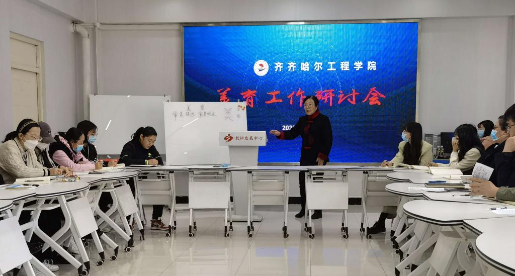 会上,学校原党委副书记许长艳做美育专题讲座。许书记结合自身经历,分享对美育的理解,认为教师应树立美育意识,结合学生实际组织开展实践活动,在实践中发现美、创造美,追求“各美其美,美美与共”。