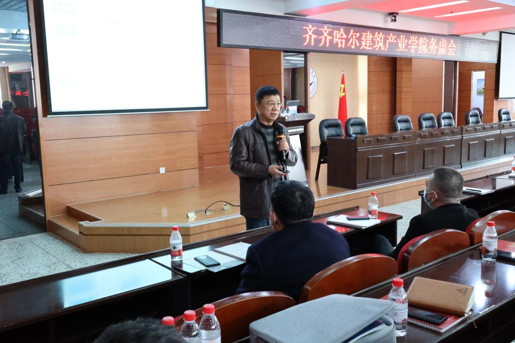 3月30日,在图书馆601召开齐齐哈尔建筑产业学院建设推进会暨学校北区建设开发务虚会,曹勇安理事长、曹然彬院长、合作企业代表出席会议,建筑工程系全体教师及骨干学生代表参加。