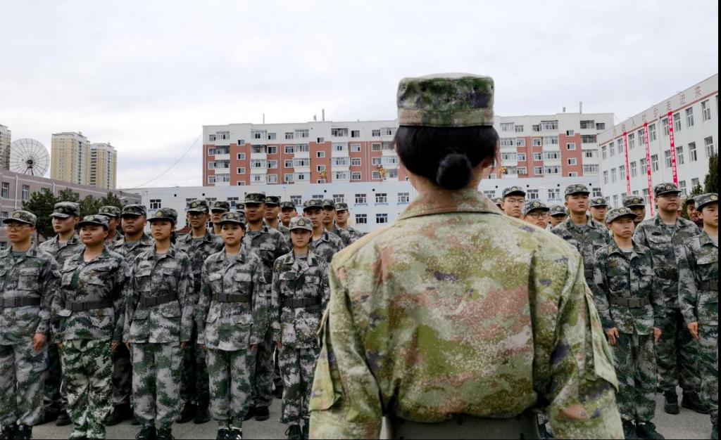 操场上,学长教官团迈着整齐的步伐进入会场,演示训练科目,他们在阳光下挥洒汗水,橄榄绿的迷彩服在阳光下熠熠生辉,展示了齐工程学长教官的风采。