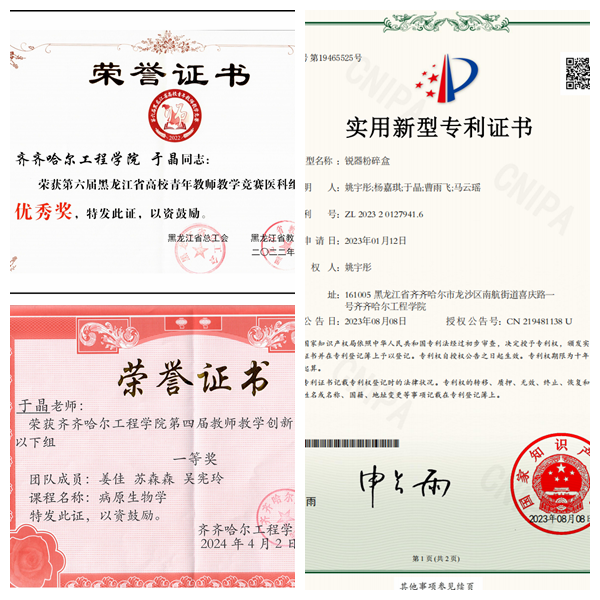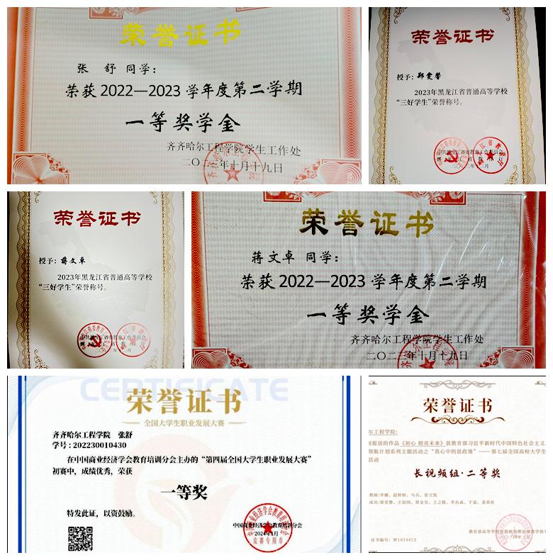 于晶所带的42名学生中,奖学金、荣誉称号获得者多人,蒋文卓、郑雯馨2人荣获2023黑龙江省“三好学生”荣誉称号。