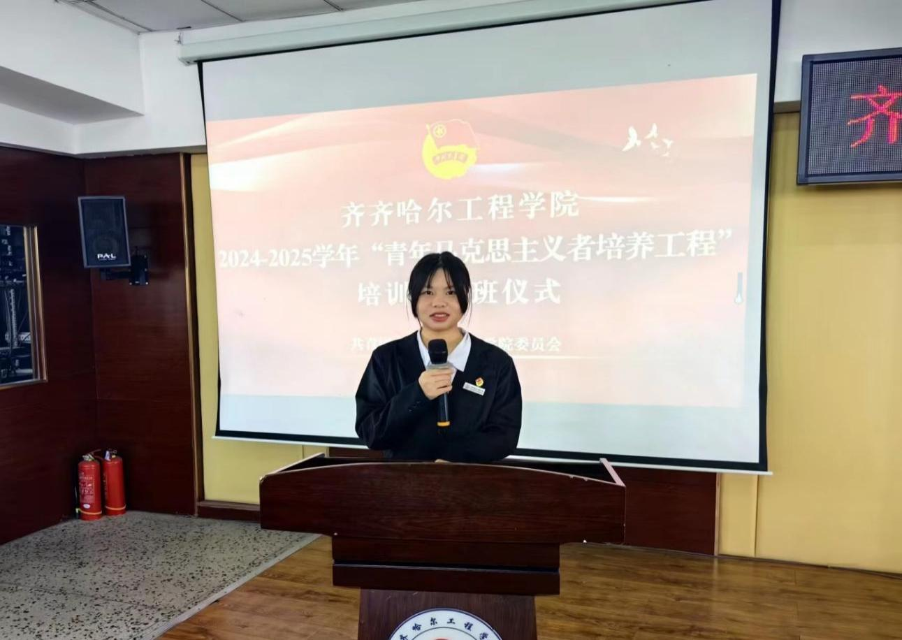 2023-2024学年“青马工程”优秀学员、信息工程系动画231班韦俊蓉发言,他希望本期学员能够抓住机会,努力学习,成为一名自强自立、奋斗不息,合格的青年马克思主义者。