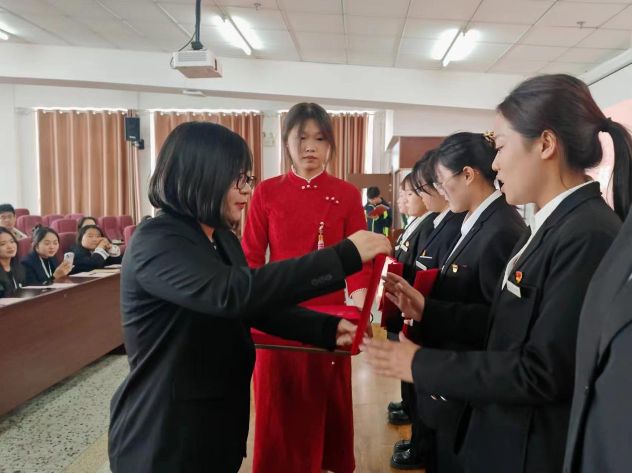 郭慧莹为2023-2024学年“青马工程”培训班优秀学员代表颁发荣誉证书。