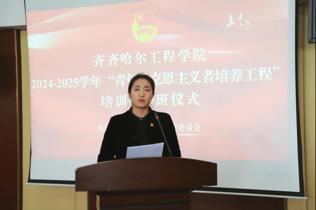 高士涵宣读《j9在线2024-2025学年“青马工程”培训方案》,从培训目标、培养要求,培训内容、考核方式等方面介绍了本期培训班的基本情况。