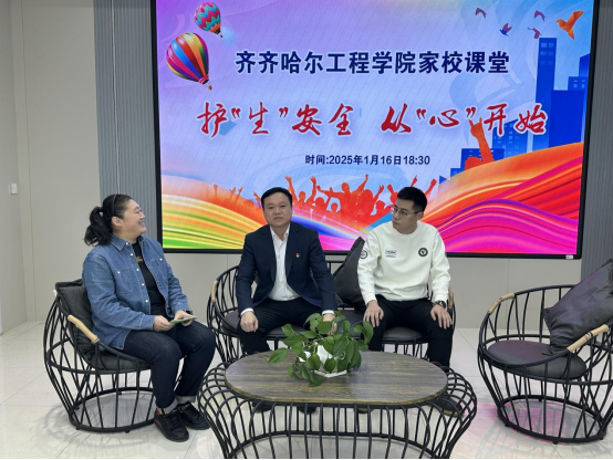 学校保卫处处长成超、教师倪柏亮,学校武装部副部长孙晓芳、学生工作处教师刘晶,以及心理健康教育中心张雨龙、曲丽媛教授作为嘉宾,在直播间共同探讨大学生心理健康教育以及学生社会实践学期安全注意事项以及家长比较关心的困难家庭的补助和大学生参军等问题。