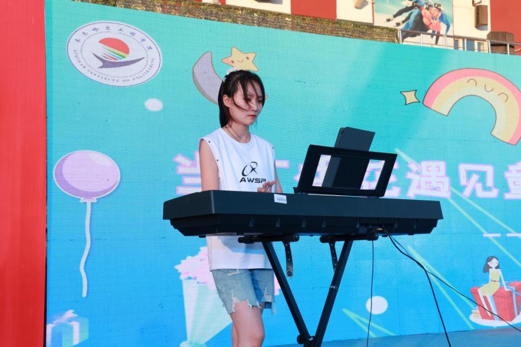 马沐萱、贾希蓓等10名来自学校子弟校的小朋友与大学生艺术团器乐分团共同带来歌曲《萱草花》,小朋友的歌声与大朋友的乐器声完美融合,现场流淌着爱与温暖。