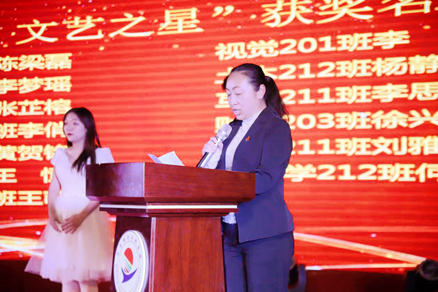 在梦蝶之光篇章中,建筑工程系学生工作副主任王丽萍宣读《j9在线梦蝶“文艺之星”获奖学生名单》,信息工程系视觉201班李晨等13人被评为学校首届梦蝶“文艺之星”。