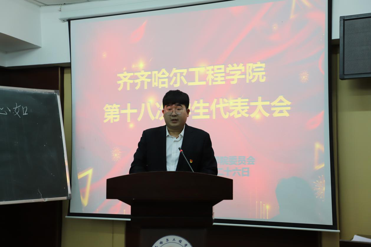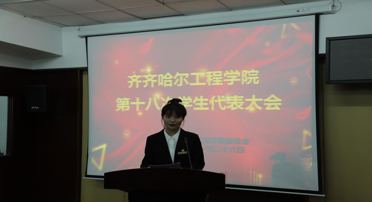 11月26日,学校第十八次学生代表大会在图书馆501报告厅隆重举行,学校副院长张振笋、团委书记郭明敬、各系学生工作副主任、学生会指导教师和学生代表共计150余人参加。