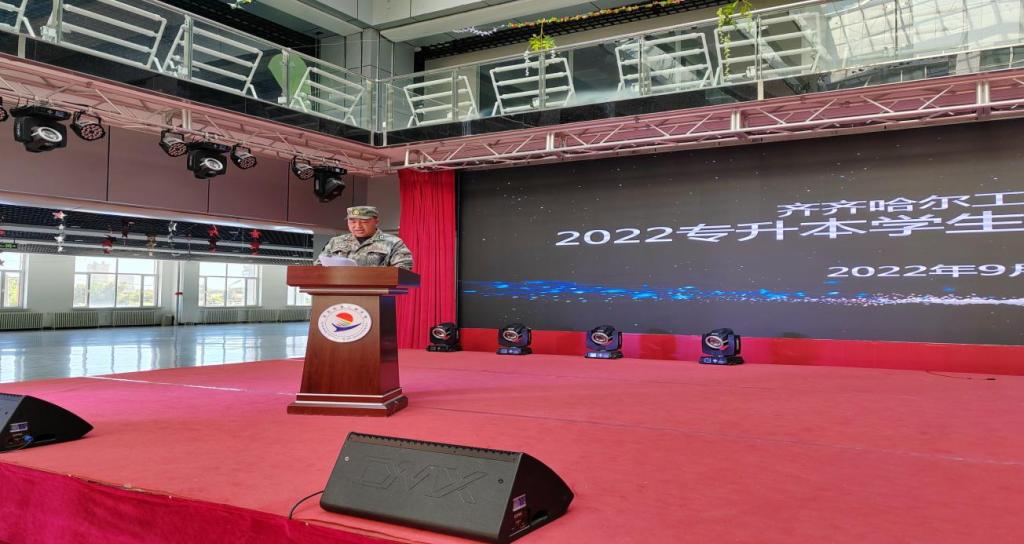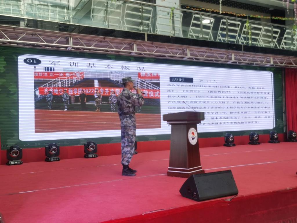 9月3日,2022级专升本学生军训总结大会在学生活动中心举行,副院长张振笋出席,各系学生工作副主任、新生辅导员、学长、军训教官以及2022级专升本全体学生参加。