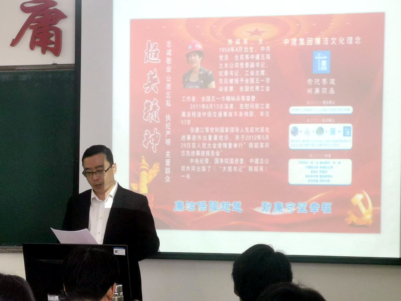 郑永会以中建二局陈超英书记为代表的“超英精神”为切入点,详细地讲述了中建人忠诚敬业、公而忘私、是非分明、关爱群众的精神。他表示,“超英精神”不仅是一种个人品质的体现,也是集体行动的指南。在中建二局,超英精神被融入日常,通过教育鼓励各级纪检人员下基层、听民意、解民忧,参与“我为群众办实事”活动等方式,践行新时代超英精神,同时,还通过廉洁宣传教育、提醒谈话等方式,助力生产,确保各项工作规范执行、平稳运行。