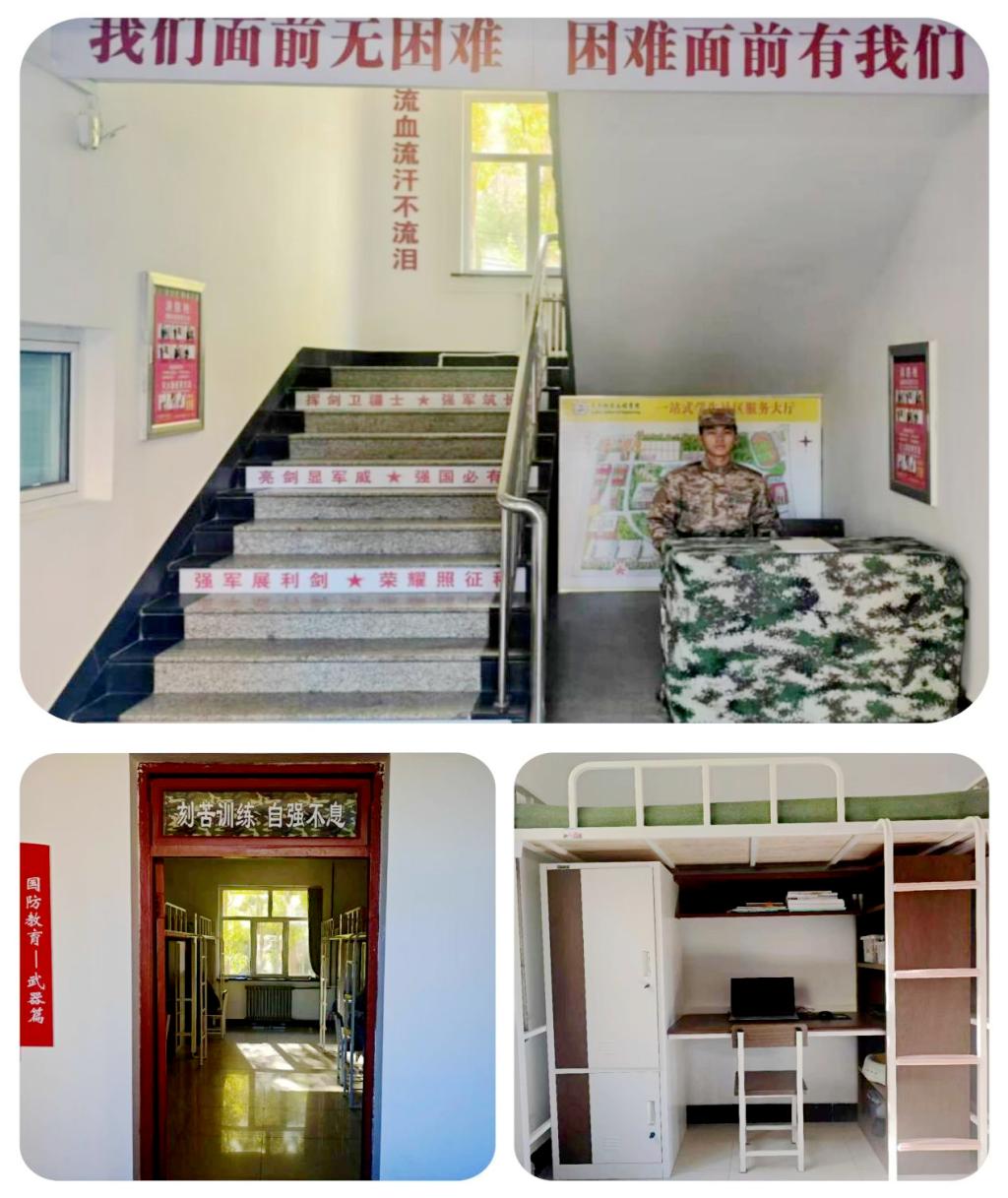 “亮剑”公寓内还设有文化墙,全面展现学长教官团发展历程与训练风采,记录了他们在军事技能训练中的卓越表现及对外输出的丰硕成果。文化墙不仅承载着学长教官们的荣耀与汗水,更激励着每一位学长教官持续追求卓越,勇攀高峰,为成就更加优秀的自我而奋斗。