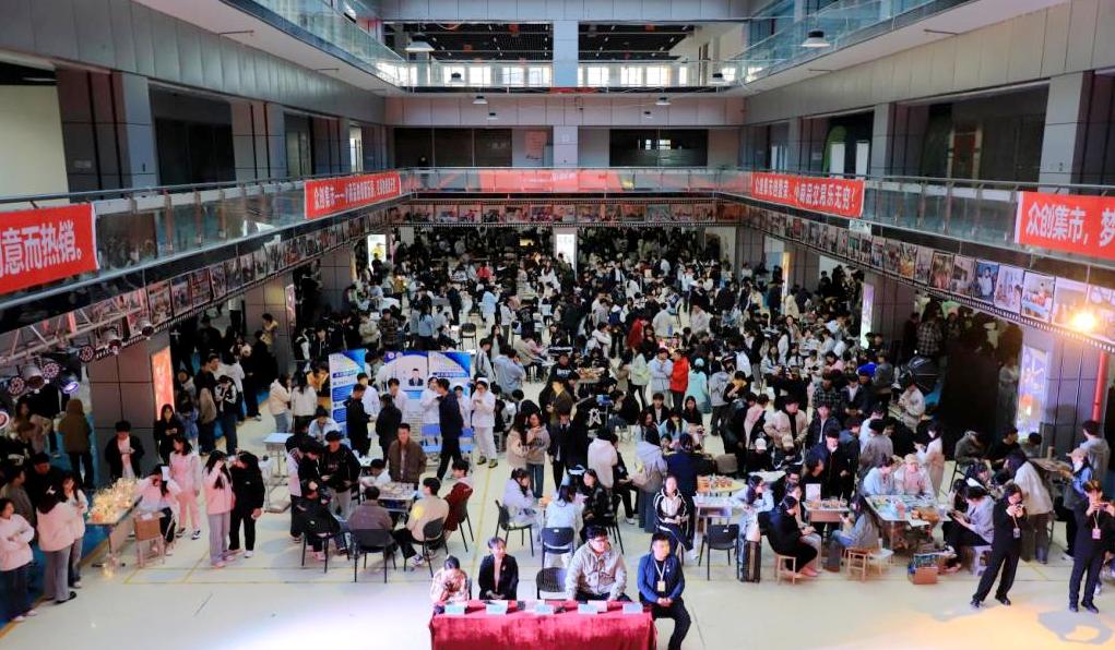 为深入落实人力资源社会保障部等7部门《关于健全创业支持体系提升创业质量的意见》文件精神,构建“培训-服务-孵化-实践”四位一体支持体系,打造全流程创业教育生态,近日,第三届众创集市暨大学生小商品交易会在学生活动中心三楼举行。本届交易会规模空前,265家由学生自主运营的商铺中,1325名“学生老板”各展项目经营所长,吸引了6000多名学生前来逛展消费。