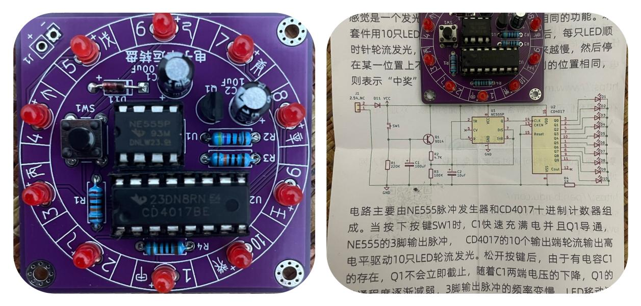 信息学院电科221班臧婧棋的作品《电子幸运转盘套件制作》生动记录了她化身“电路创客”的精彩瞬间——在电子实训教室里,她专注地操控着镊子轻夹电阻,电烙铁精准点锡成珠,让NE555脉冲发生器与CD4017计数器在指尖默契“起舞”。作品说明中,她写道:“当最后一枚焊点闪烁光芒的那一刻,我感受到脉冲频率与呼吸的共鸣,更深刻领悟到电子元件协同运作背后‘毫厘必究’的工匠精神,也收获了将设计图纸转化为成品的惊喜与快乐。”