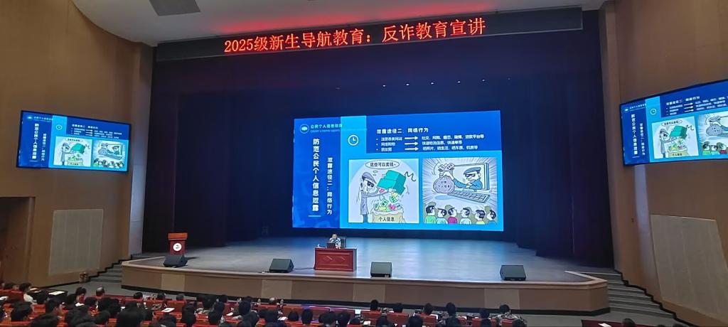 为提升大学生群体的反诈意识,增强新生自我保护能力,9月7日,学生工作处与保卫处联合邀请公安系统专家为我校2025级新生开展电信网络诈骗防范知识宣讲会,这也是学校开展新生入学系列教育活动之一。
