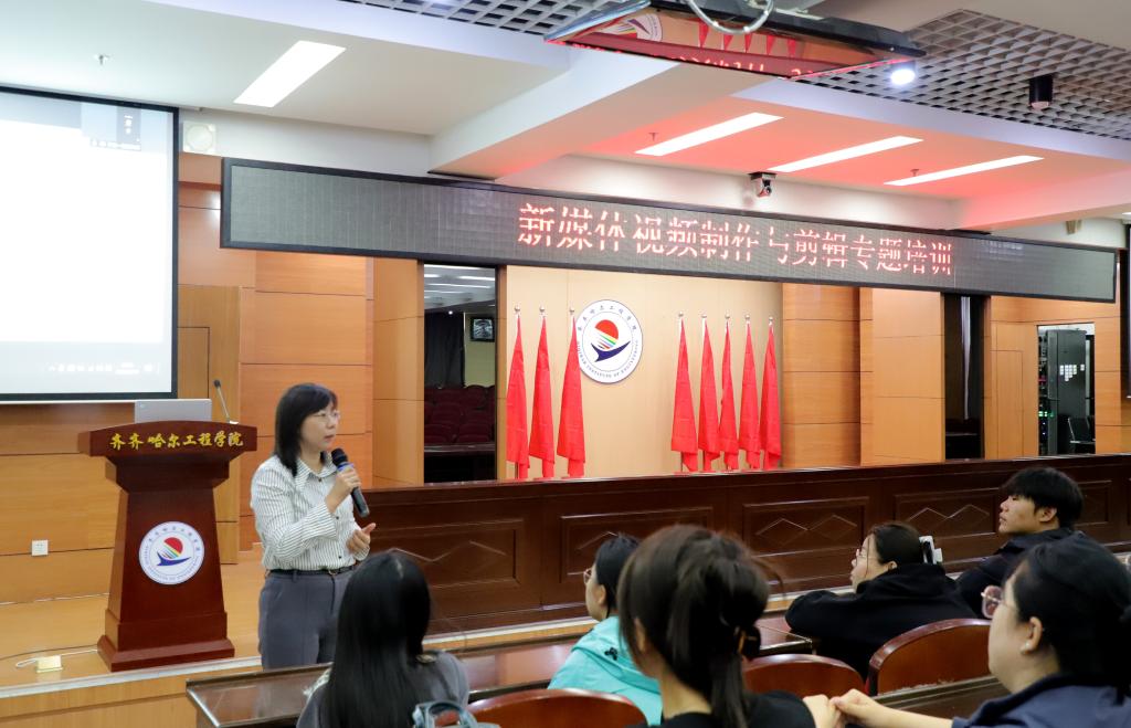为顺应新媒体时代发展浪潮,切实提升学生新媒体创作与视频剪辑能力,帮助学生以影像记录成长,赋能自媒体账号高质量运营,9月19日,学校在图书馆601举办新媒体视频制作与剪辑专题培训。本次培训由党委宣传统战部联合信息学院共同举办,党委宣传统战部副部长王倩主持,融媒体中心于杰一主讲,各学院学生骨干及学生代表参加。