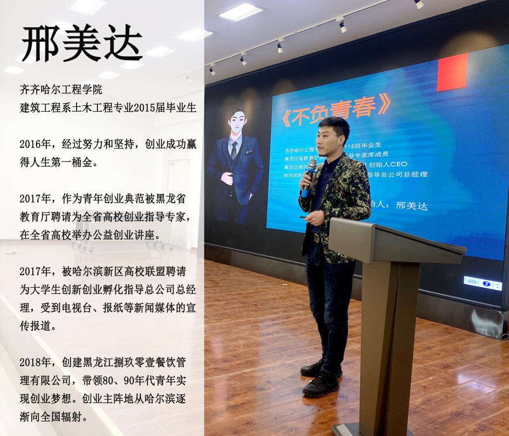 回忆起大学时光,邢美达感慨地说:“在学校学到很多,当年学校管理很严格,现在却发自内心地感谢这种严格,尤其学校在创新创业方面的引导,让我知道未来的自己到底想要过什么样的生活,我很感谢学校。”