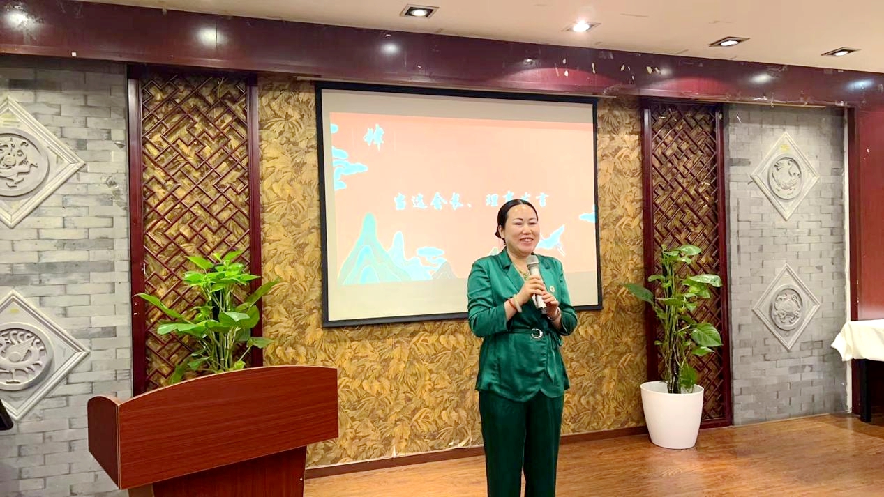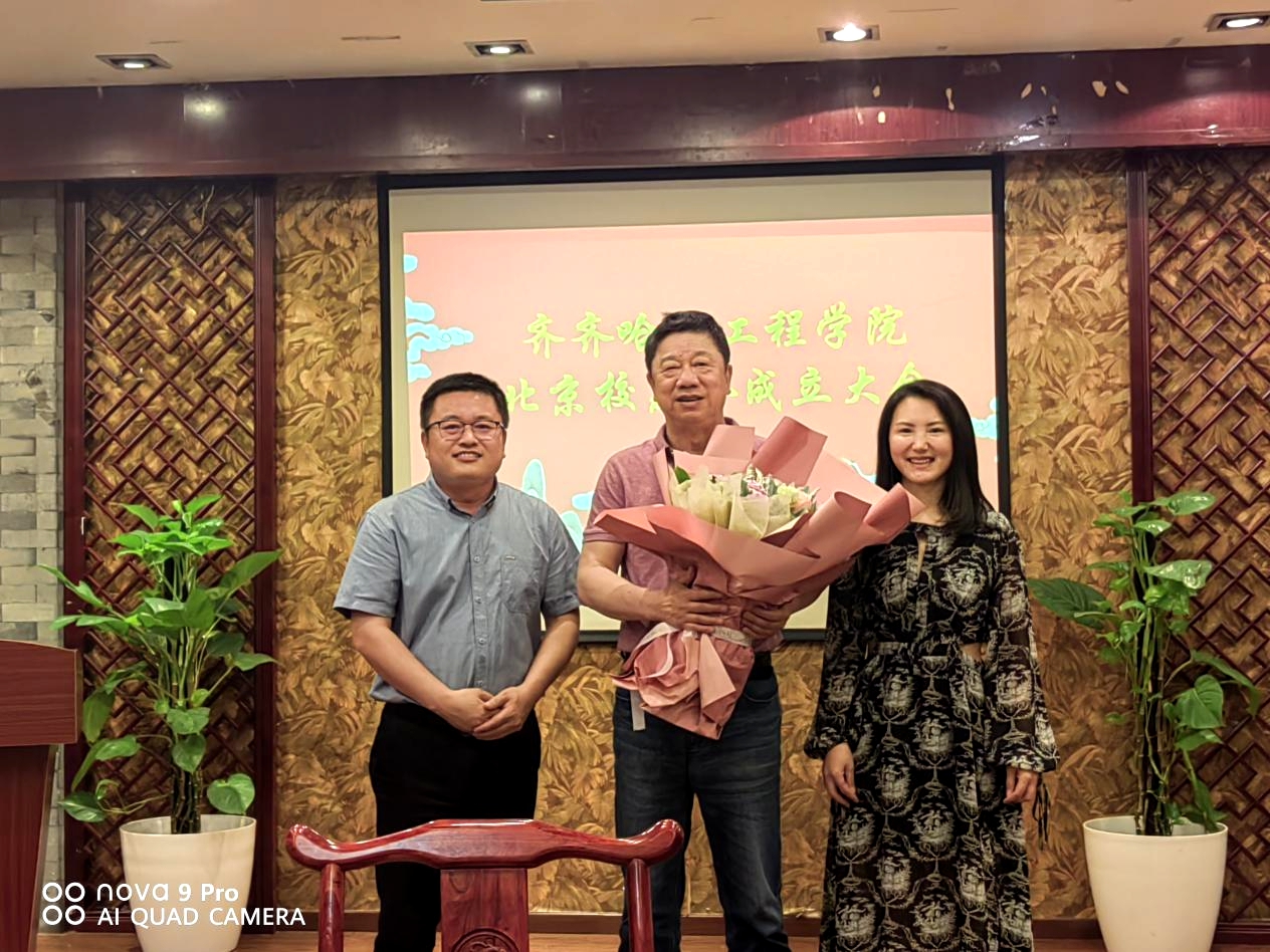 秘书长王子艳代表北京校友会向曹勇安献花祝身体健康,并祝学校越办越好。